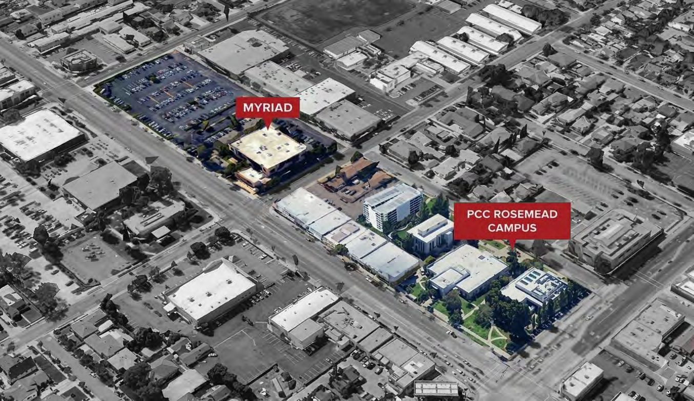 Pasadena City College has purchased the entire block directly east and is building a new Rosemead campus. Myriad retains parking-lot access rights.